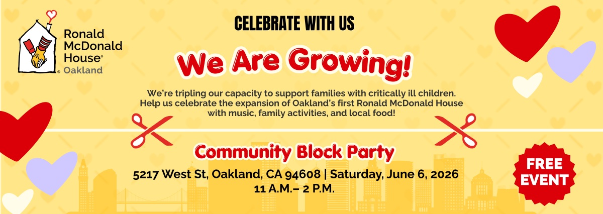 Help us celebrate the expansion of Oakland’s first Ronald McDonald House with live music, kids activities, local food trucks, and more!
